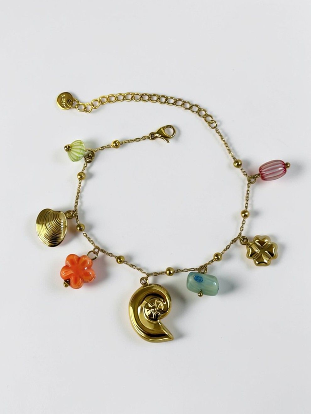 Un bracelet à chaîne fine orné de breloques multicolores pastel. Léger et pétillant, il apporte une touche douce et joyeuse à votre poignet.