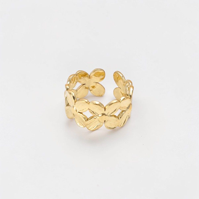 Une bague ajustable ornée de fleurs sculptées. Délicate et inspirée de la nature, elle habille la main avec élégance et légèreté.